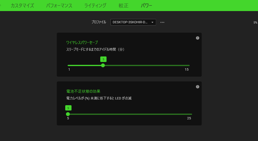 パワー、バッテリー設定