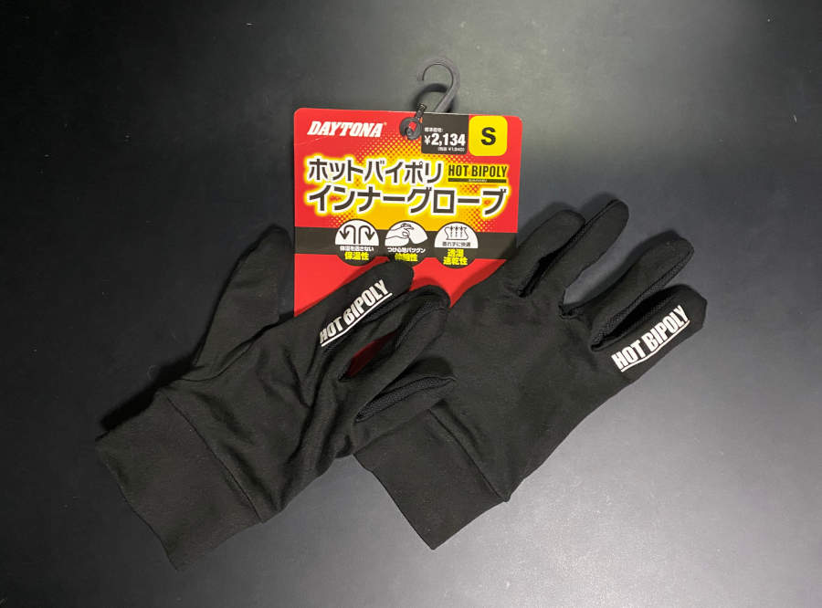 グローブの内側に「デイトナのバイク用インナーグローブ 秋冬用をつけています。