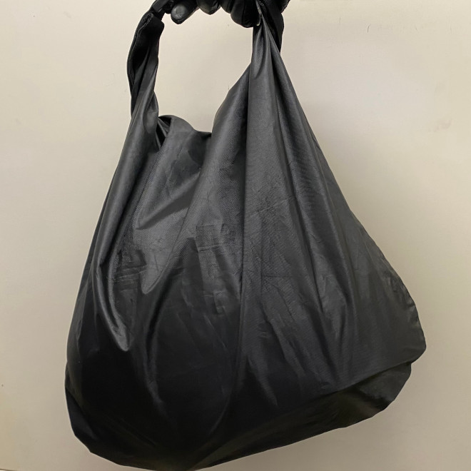 付属している収納袋にいれれば25cmぐらいにコンパクトになる。