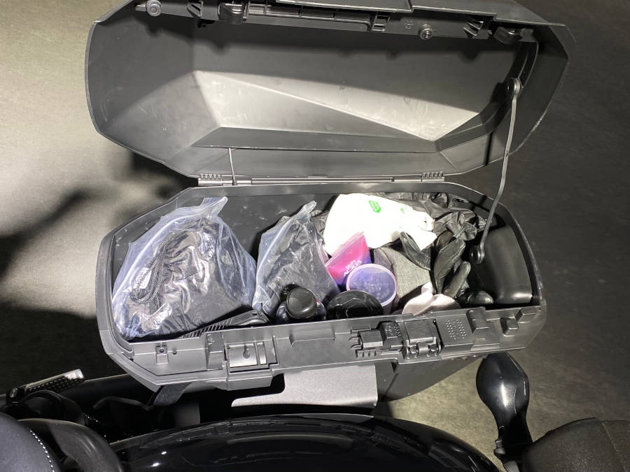 雨具などのバイクの道具を入れるのに便利です。