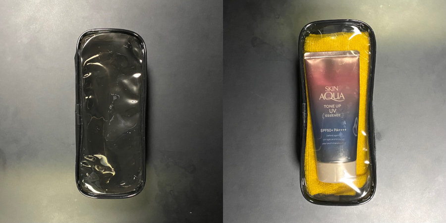 マイクロファイバータオルや日焼け止めなどいれておいている。