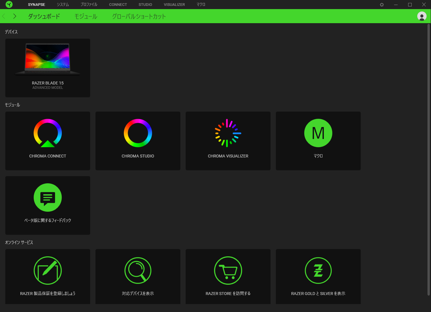 RAZER BLADEはデフォルトでSynapseインストールされてました。