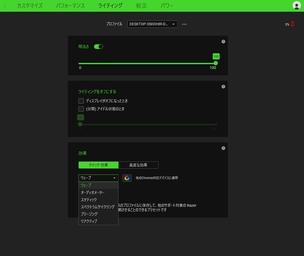 パワー、バッテリー設定