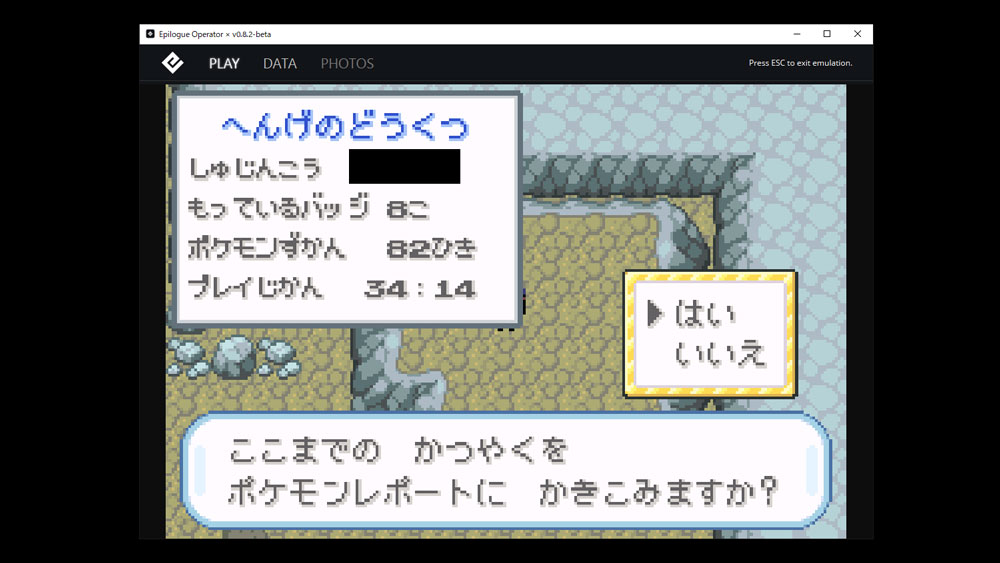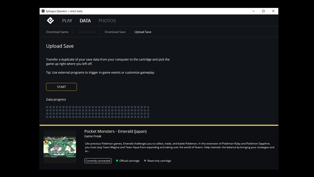 【翻訳】保存データの複製をコンピューターからカートリッジに転送し、中断したところからゲームを開始します。