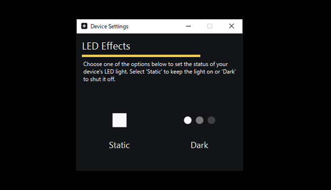 本体のLEDをStatik(点灯)/Dark(消灯)するか設定できる。