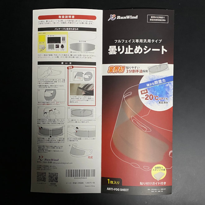■フルフェイス専用汎用タイプ 曇り止めシート ▶リンク
