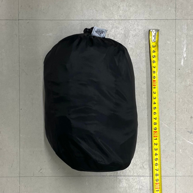 付属している収納袋にいれれば25cmぐらいにコンパクトになる。